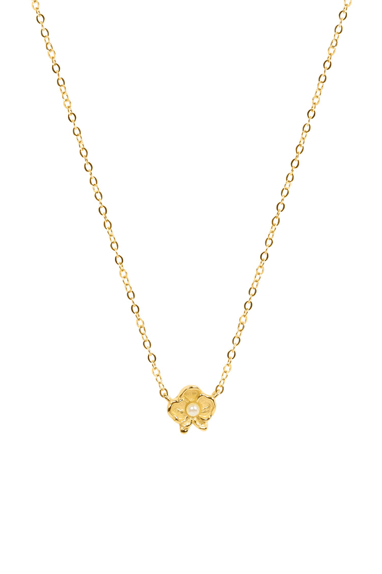 Bring a touch of nature to your style with our Daisy Pearl Necklace. Featuring a delicate daisy pendant with a lustrous pearl at its centre, this 18k gold-plated necklace is a fresh and feminine piece perfect for everyday wear.